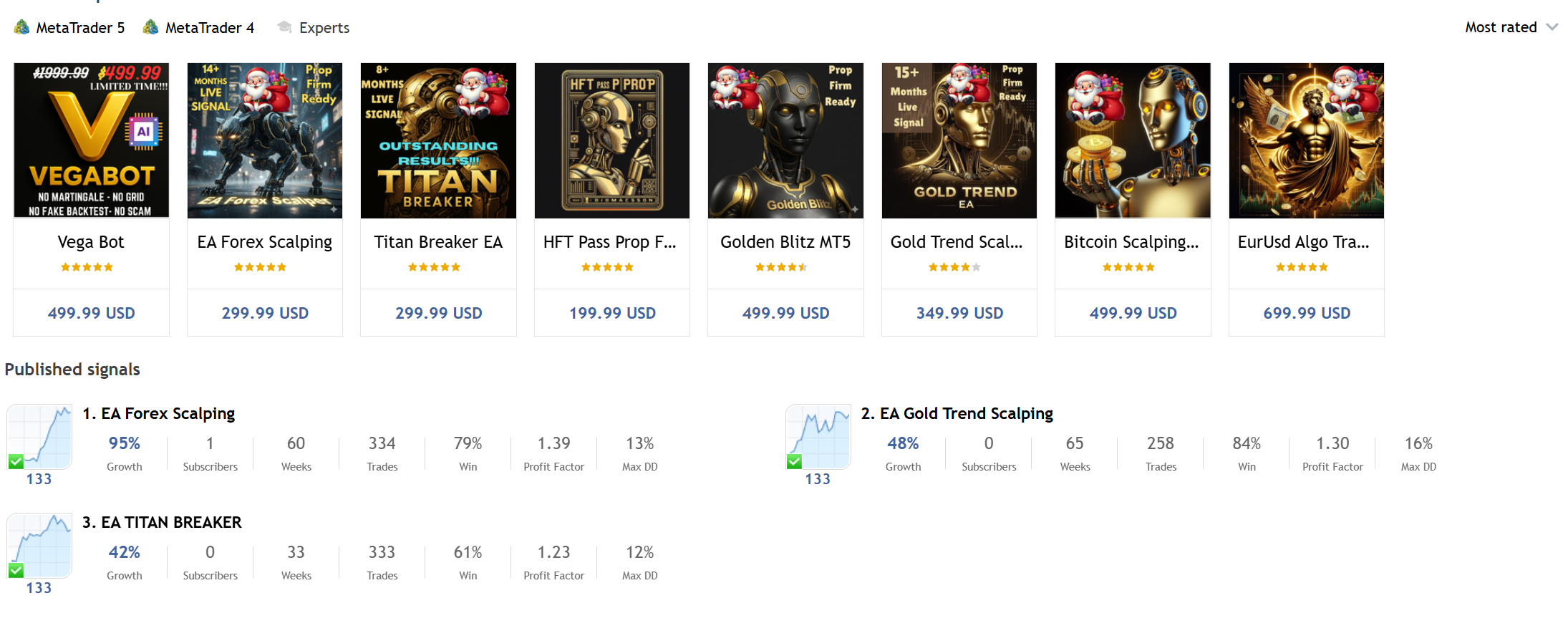 To celebrate Christmas, I’m offering a limited-time 50% DISCOUNT on ALL Expert Advisors in my store.
