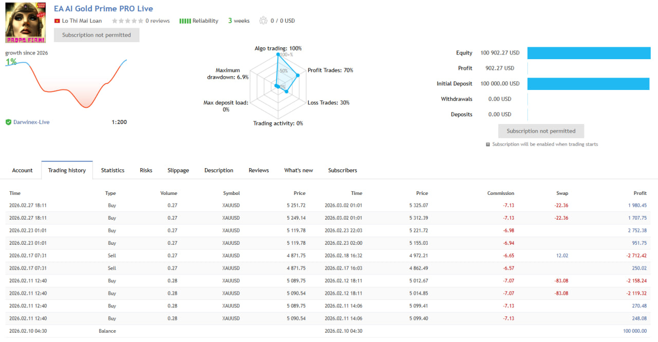 Whether you trade with a small personal account or manage a large funded account, Gold Prime provides the flexibility to choose the strategy that fits your trading profile.