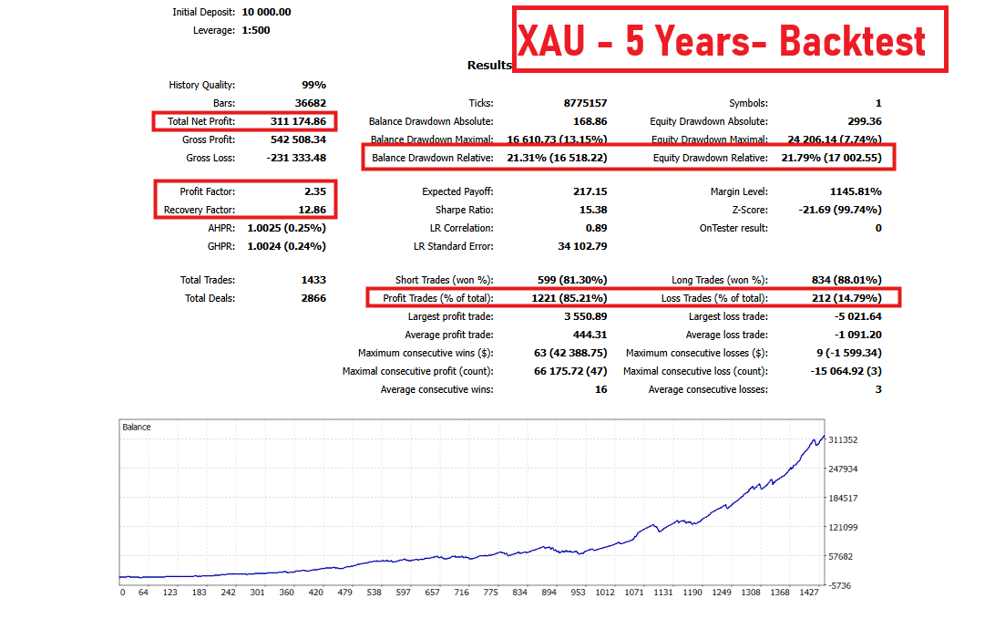 The EA is designed to achieve a target win rate of ≥80% by combining strict entry logic, multi-layer trade confirmations, and a powerful AI Market Filter that continuously analyzes market structure, volatility, and momentum.