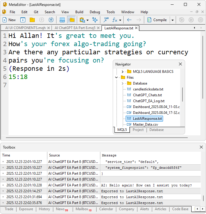 Building AI-Powered Trading Systems in MQL5 (Part 8): UI Polish with Animations, Timing Metrics, and Response Management Tools -