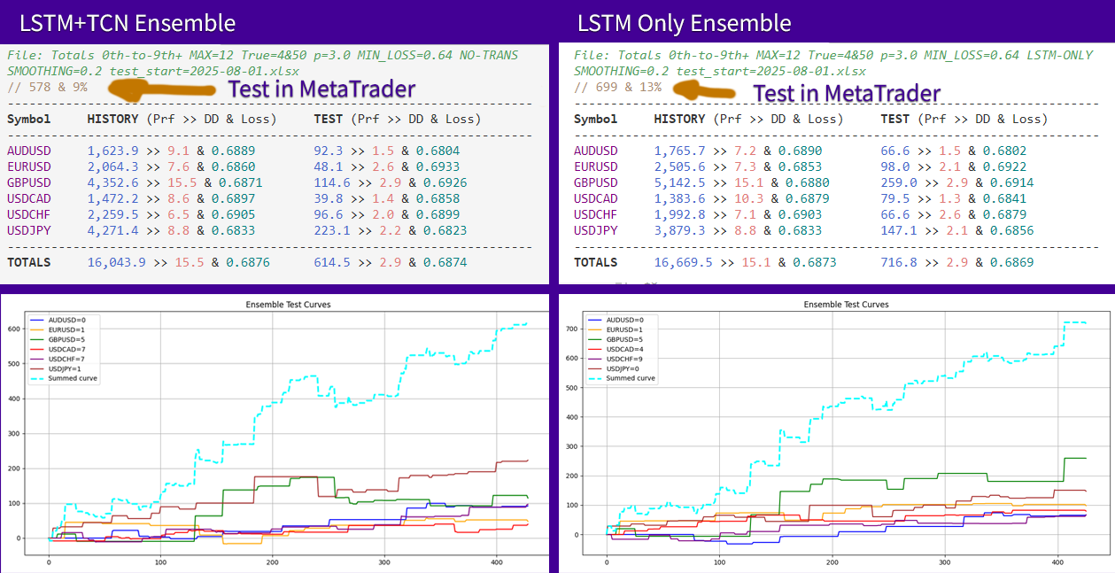 So what does this mean in practice? Honestly, it might mean absolutely nothing — because only live trading can truly validate these differences. And what are we seeing right now? At the moment, the "LSTM Ensemble" is indeed “hammering in” more profits, while the "Edge Ensemble" (LSTM+TCN) continues searching for higher-quality opportunities with a more adaptive approach.