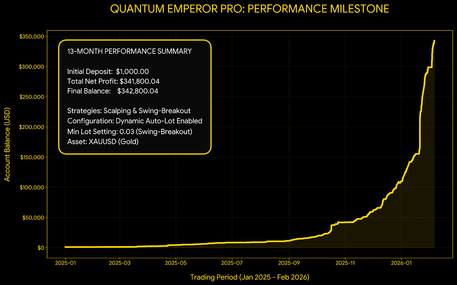 According to our verified 13-month trade record, a modest $1,000 starting balance grew into an incredible $342,800.04 💰🔥