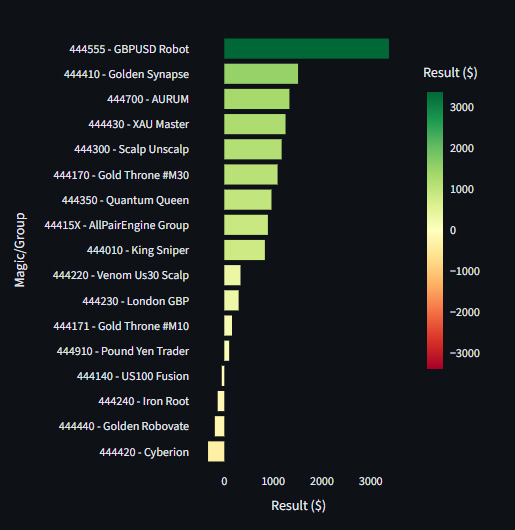 I’d like to share my observations. Here are the results of different EAs running on a Tickmill demo account. To standardize the comparison, I adjusted the lot size so that if an EA hits its maximum drawdown (based on 5-year backtests), the loss would equal $500.