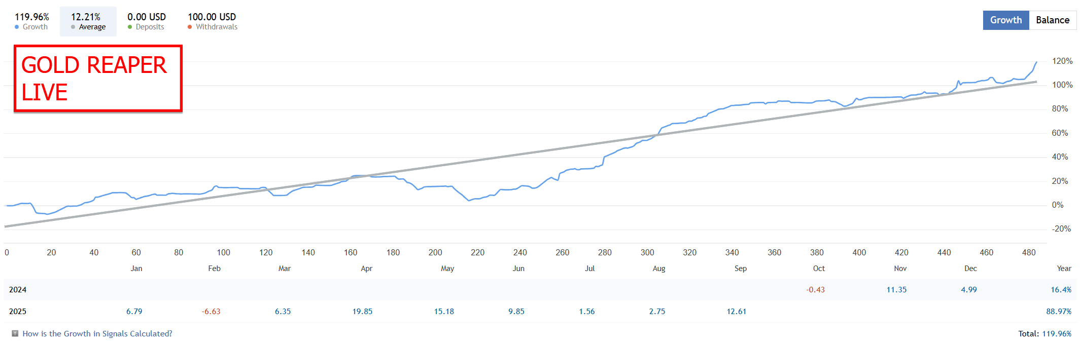 For nearly two years, Gold Reaper’s proven strategies have been crushing it, consistently hitting **new all-time highs** in 2025! 🔥 Built on rock-solid foundations developed almost two years ago, this trading robot delivers **unmatched performance** and reliability. 💪