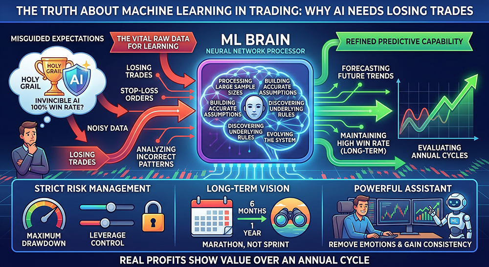 It learns from EVERY trade—wins AND losses—to bounce back stronger.