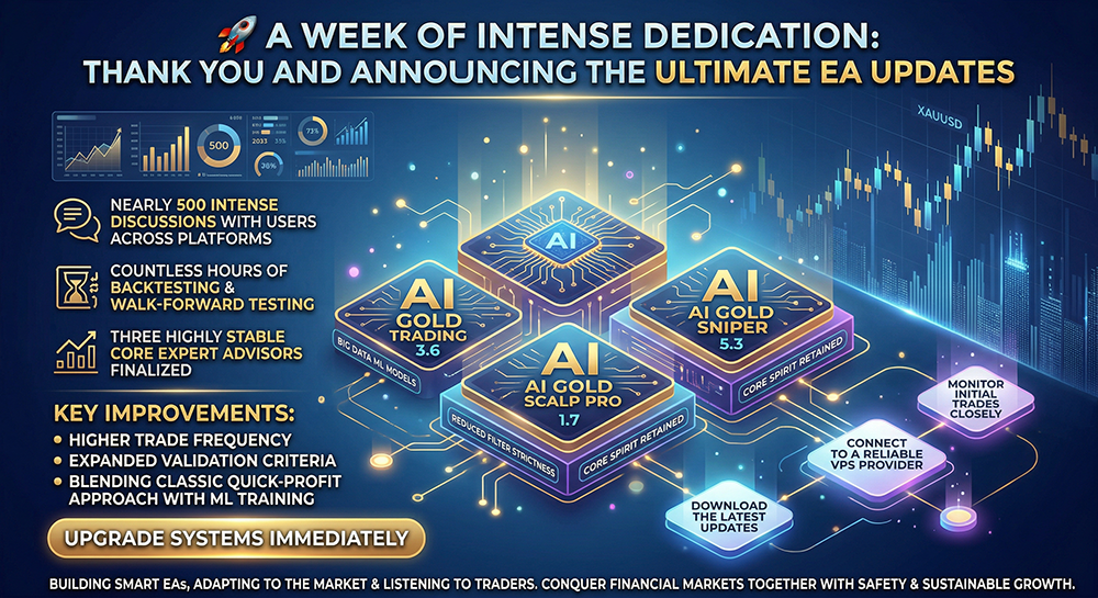 After many months of hard work, I have officially rolled out a major update for AI Gold Sniper, AI Gold Trading, and AI Gold Scalp Pro by significantly upgrading their machine learning models.