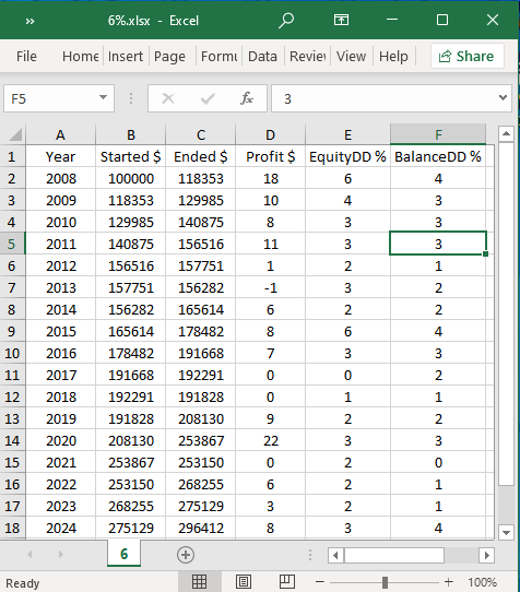 In 17 years of simulation it has shown that before every doubling of my capital there is a drop of the order of 20% from the peak of the capital. The same happened in August 2024 as shown in the image.