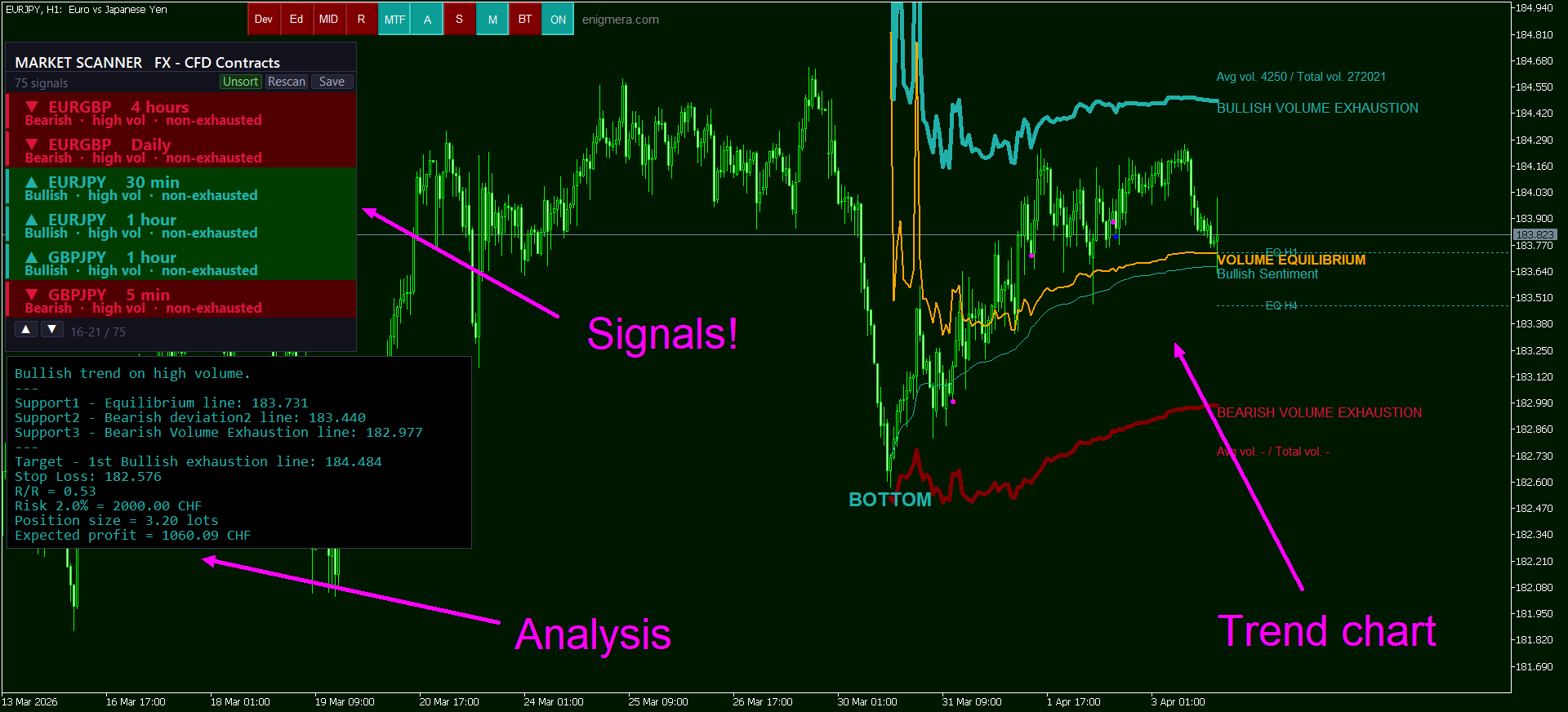 MERAVITH SCANNER is a professional financial market indicator for MetaTrader 5 that consolidates multiple analytical tools into one integrated system. It performs all calculations automatically using a proprietary volume-weighted average price methodology, eliminating subjective interpretation entirely. This indicator contains features that may not supported by the MetaTrader current testing environment The indicator works on all asset classes (Forex, Stocks, Indices, Commodities