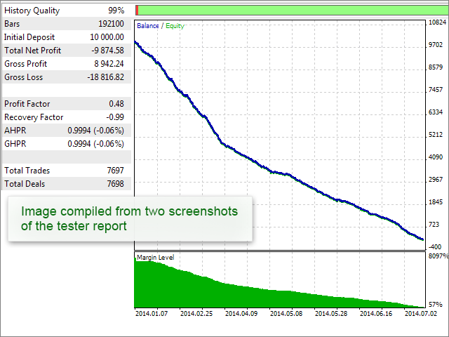 La calidad empeora, pero el autor no tiene la culpa, él ha hecho el terminal lo más estrecho posible, pero aun así la anchura de la captura ha salido superior a los 640 píxeles, por lo que simplemente ha reducido la imagen hasta las dimensioneas requeridas. En realidad, en este caso se podría no haber comprimido la imagen propiamente dicha. Lo mejor era editar la captura en el editor gráfico. Habría bastado con estrechar las dimensiones de los controles en los ajustes del simulador y librarse de la columna "Steps" sobrante en los parámetros del experto. Y así obtenemos una imagen de calidad bastante mayor, sin perder ninguna información importante.