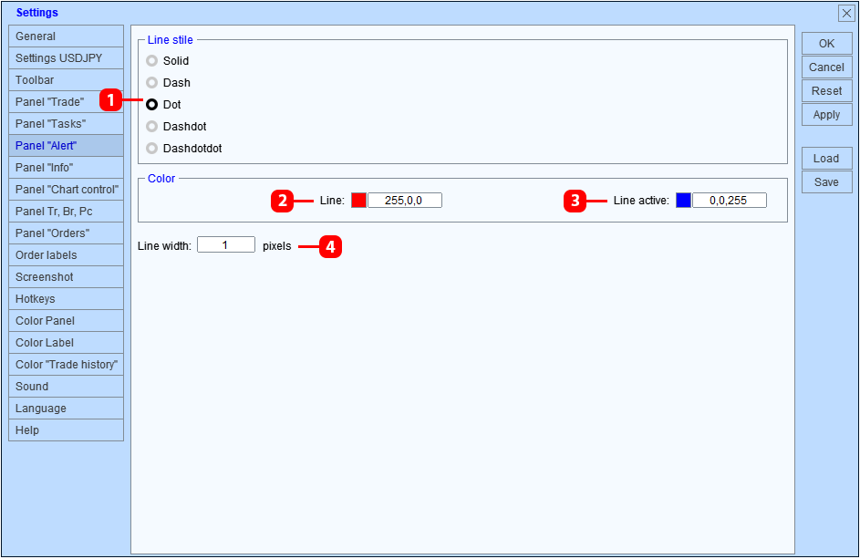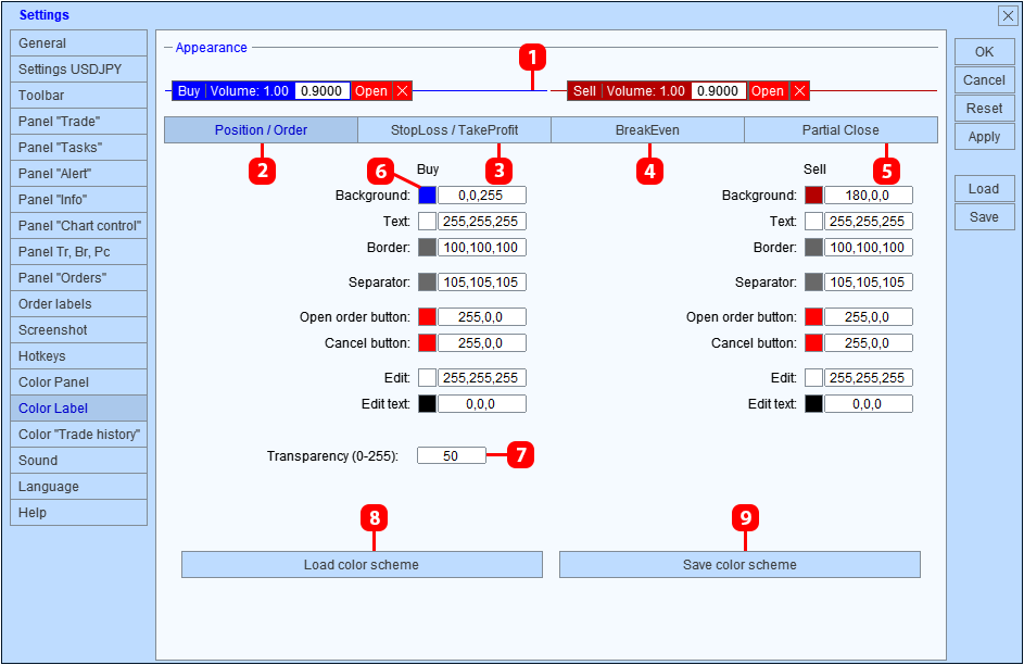- Establecer el color de las etiqueta del nivel de orden de stop loss y take profit.