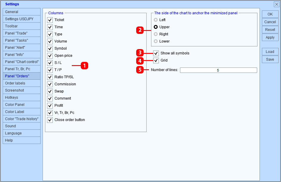 - Método asincrónico de cierre de órdenes: Trade Panel envía una solicitud para cerrar una orden sin esperar y procesar el resultado de la solicitud. Este método acelera el cierre de órdenes y posiciones. (sólo para MT5).