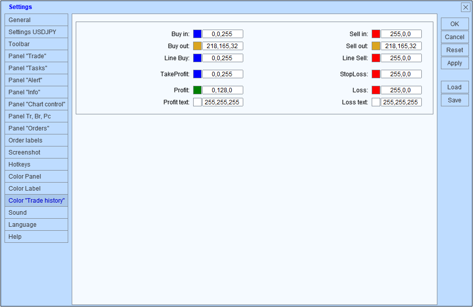 Pestaña: Color "Trade history"