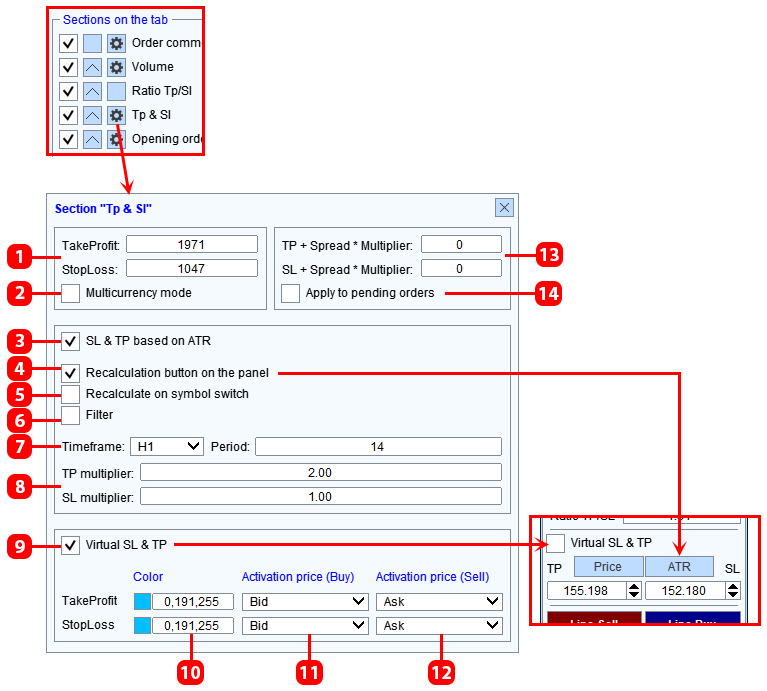 - Configuración de los parámetros de la sección TP & SL
