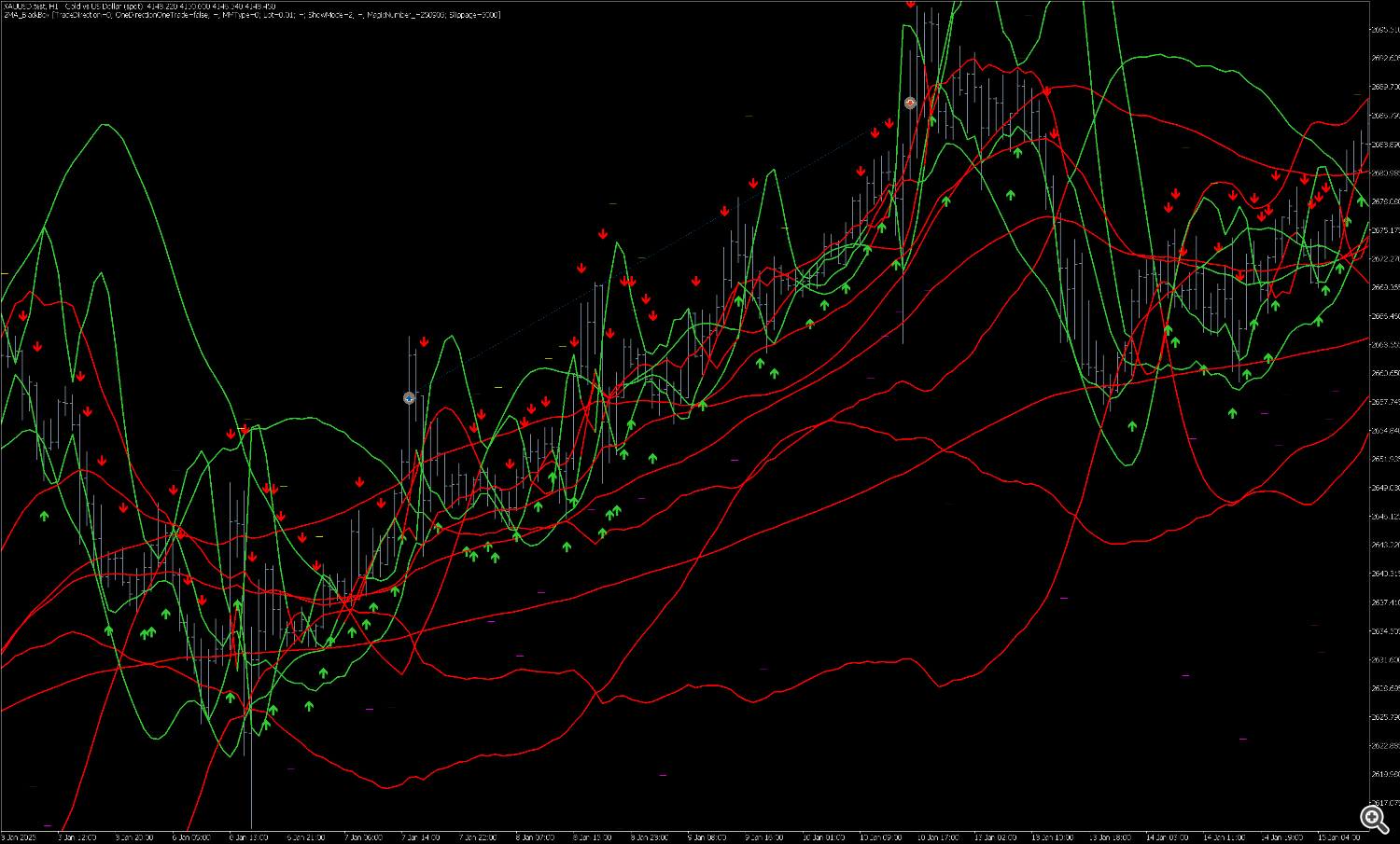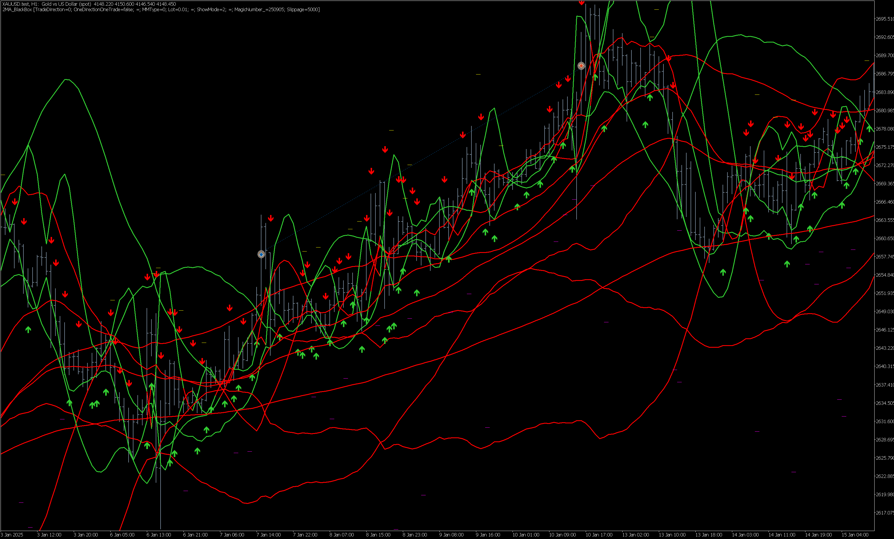 Sinergia y diversificación: La idea clave del sistema no reside simplemente en usar múltiples copias del indicador, sino en personalizarlas (posiblemente mediante diferentes parámetros o compensaciones) para que funcionen en distintas condiciones de mercado. Esto permite que el sistema se mantenga activo tanto en mercados con tendencia como en mercados laterales, donde una única estrategia podría, de otro modo, provocar rachas de pérdidas.