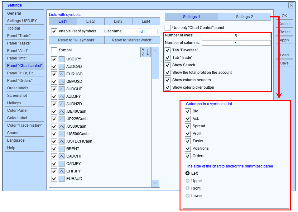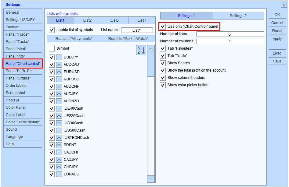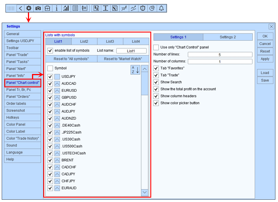 Panel de operaciones: dos formas de cambiar rápidamente de símbolo en un gráfico.