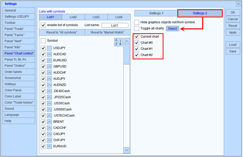 3️⃣ Seleccione los gráficos en los que desea alternar el símbolo: