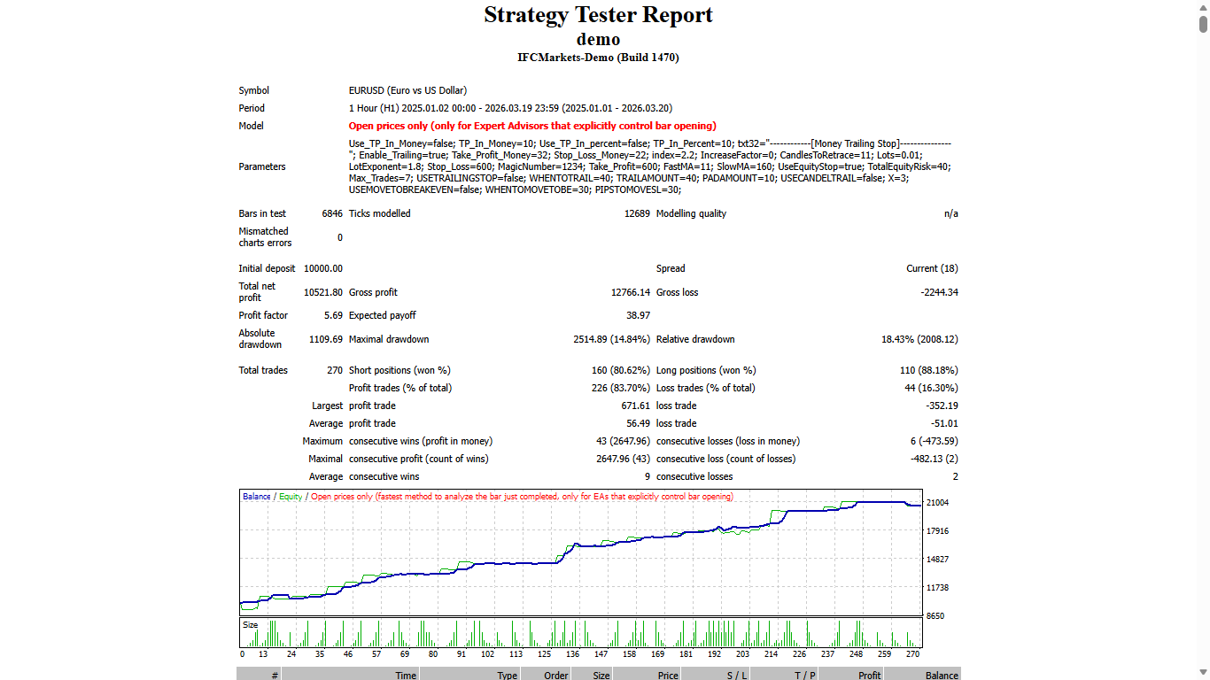 This EA uses modified Williams Awesome Oscillator (AO) and Accelerator Oscillator (AC) indicators for trade entry.