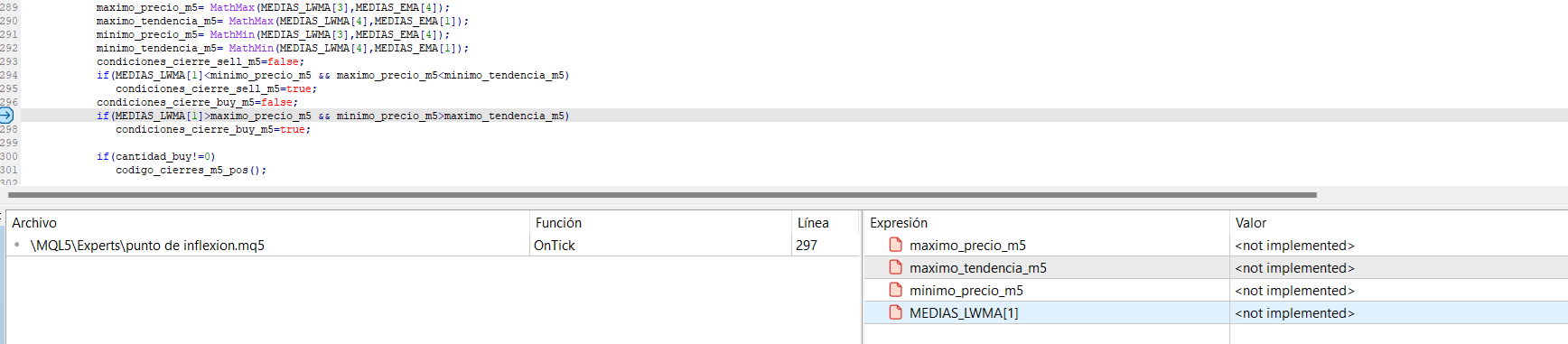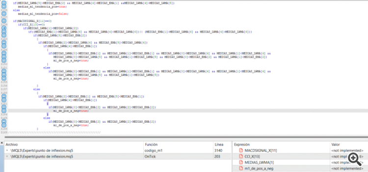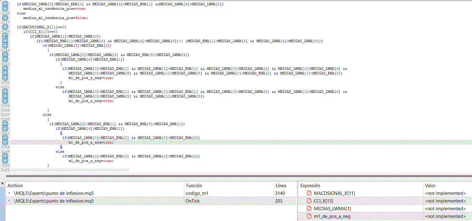 y como se puede apreciar, al activar el backtesting, por si solo, elimina puntos de control en lineas válidas (los else y la linea 3139). En ésta sección en concreto la linea ha sido respetada en la ejecución pero he tenido momentos en los que la ignoraba pese a ser válida y no ejecutaba el código correspondiente.