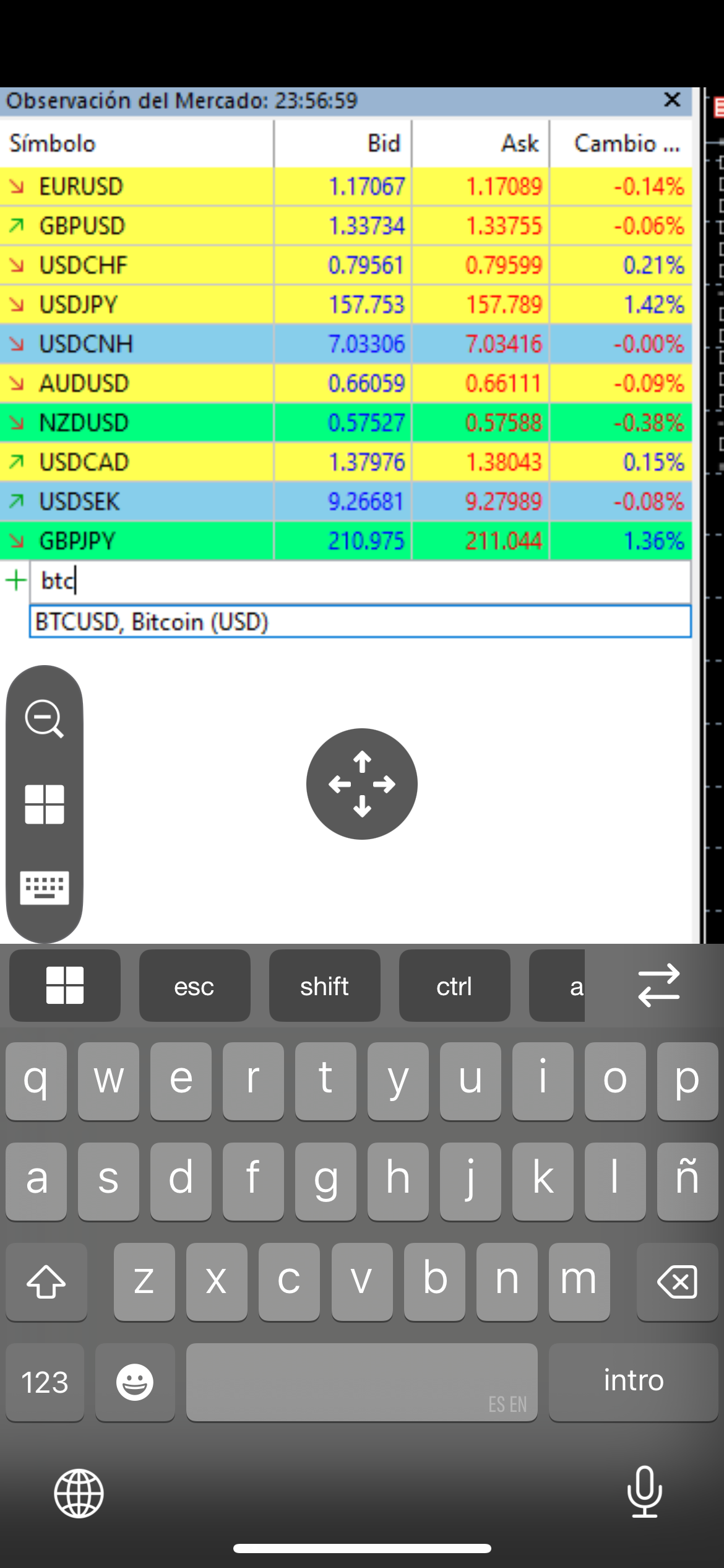 Entra al sitio web de tu broker y revisa si tiene disponible las criptomonedas, normalmente las encuentras como btcusd, ethusd, etc y las agregas desde markets así como en la imagen
