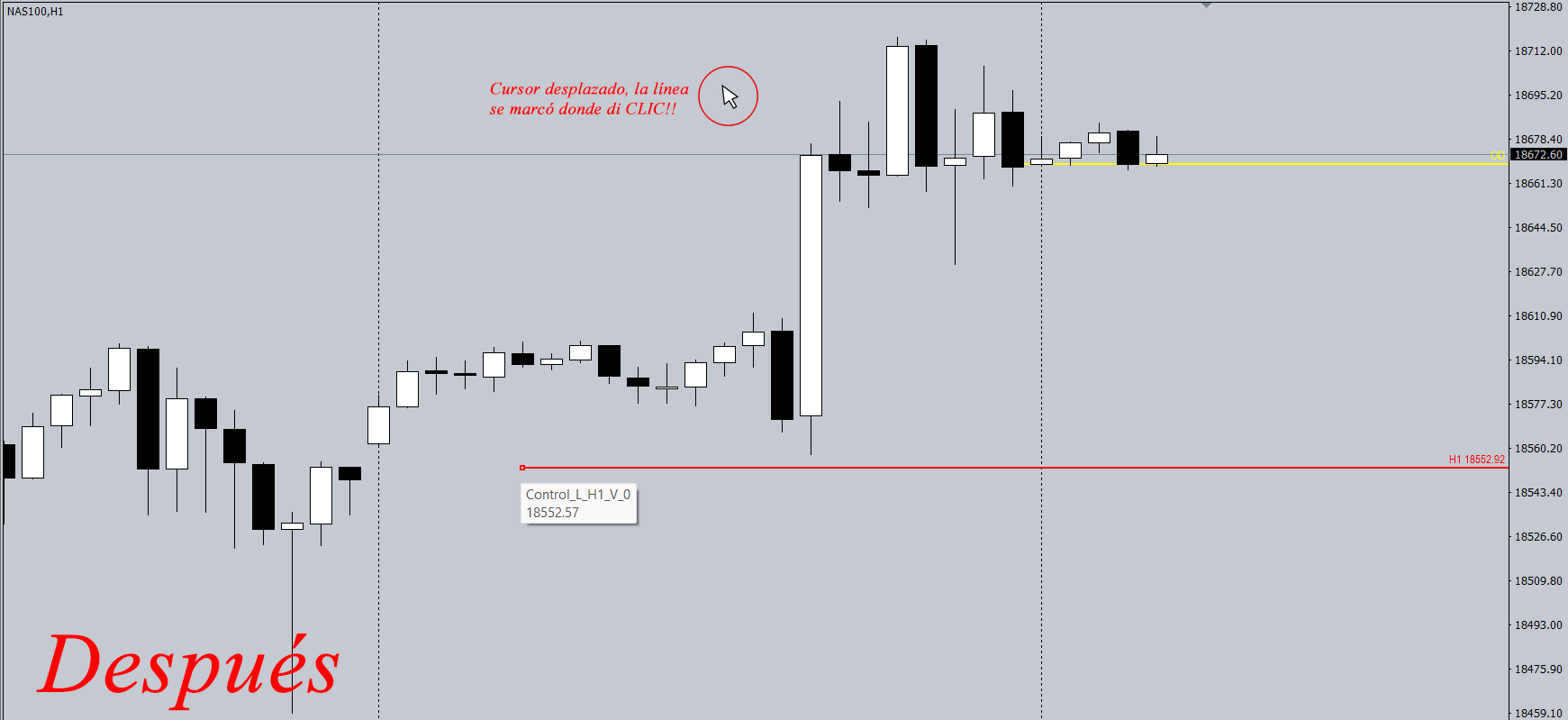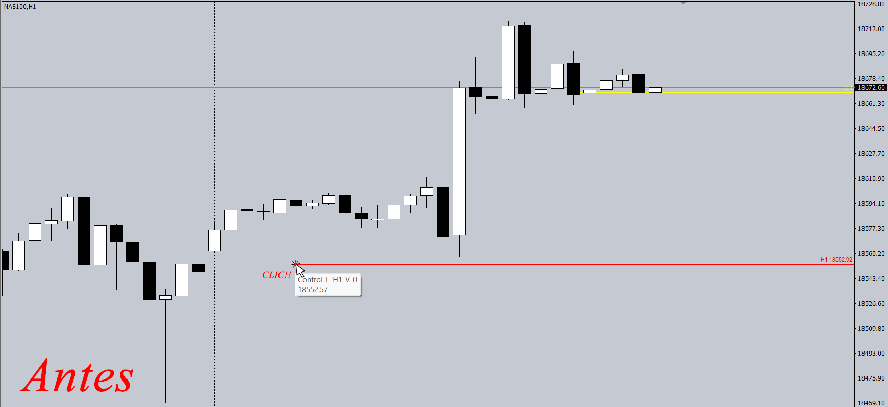 Sin embargo, sí es posible hacer algo similar utilizando un enfoque alternativo. La idea sería crear un indicador que gestione el "modo dibujo" (por ejemplo, con un botón gráfico) y luego usar el evento OnChartEvent para capturar los clics del ratón en el gráfico. Cuando se hace clic, el indicador puede dibujar la línea en la posición seleccionada.