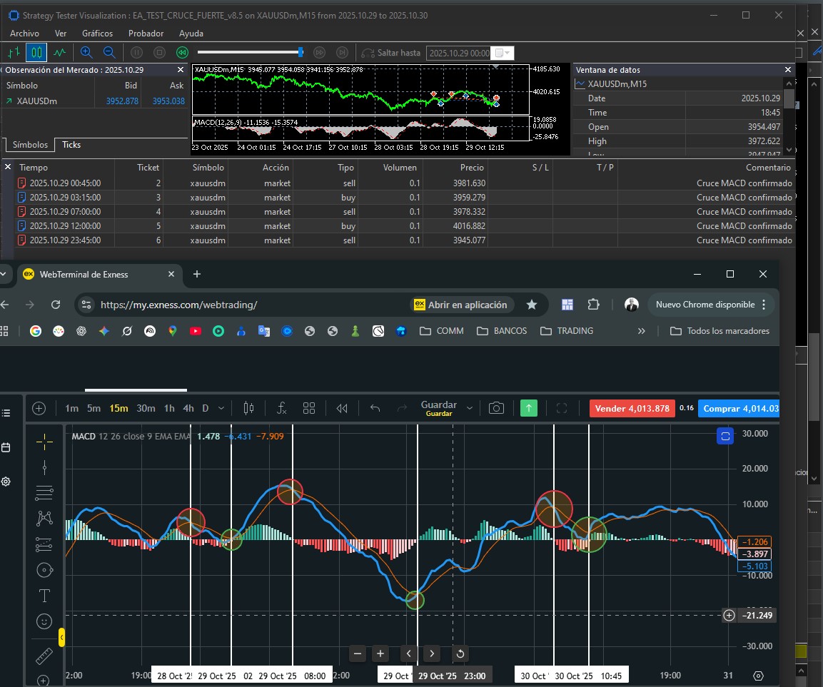 Estoy probando un EA con cruces de MACD ( yo estoy en - 3 UTC ) y los horarios de los trades que me abrio el tester no coinciden !!