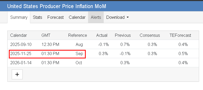 Sin embargo, he notado que algunos eventos, por ejemplo el ultimo valor publicado del evento United States Producer Price Index (PPI) m/m, tienen la hora de publicación atrasada (una hora) con respecto a otros calendarios, como Investing, Trading Economics, etc.