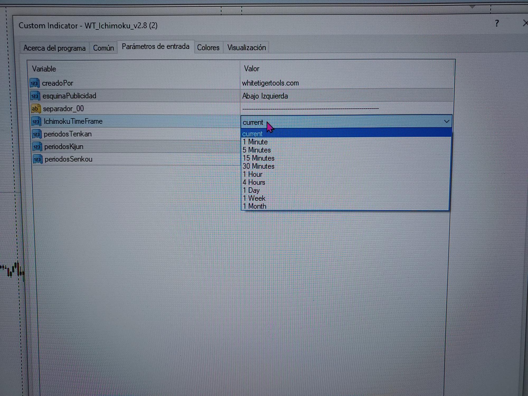 en el que se pueda seleccionar el tiempo en el que se quiera que funcione , por ejemplo un ichimoku de h1 en un grafico de m5