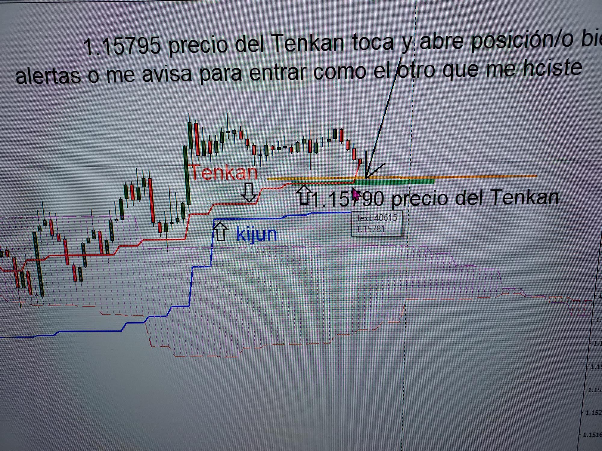 Vemos como marco un precio 1.15790 y cuando la linea de Tenkan toka 1.15795 saltaria alerta/posicion/trailing/ etc...