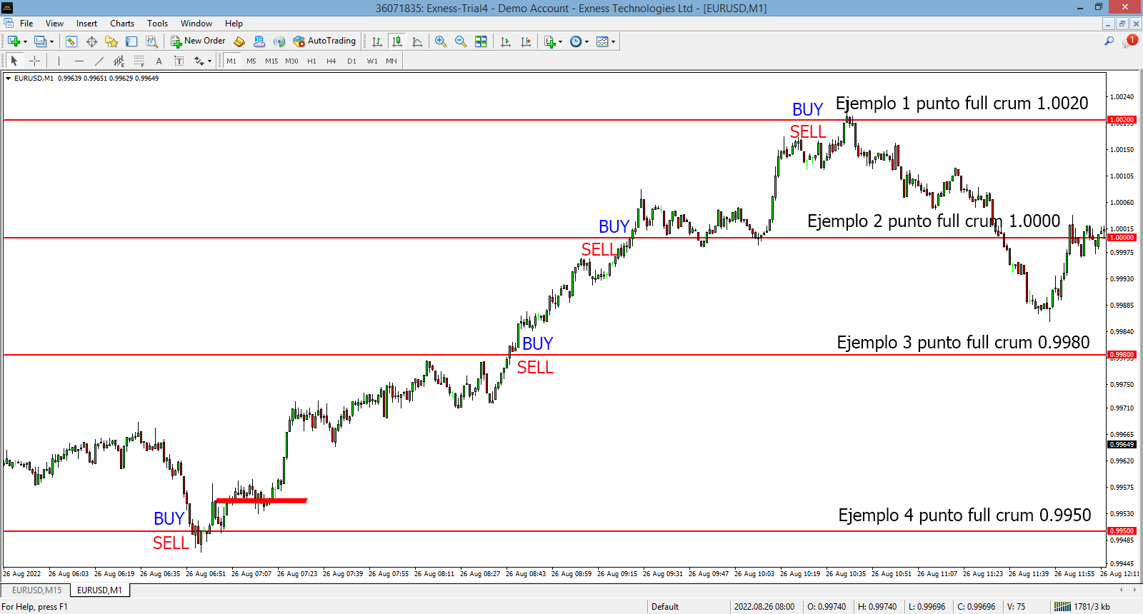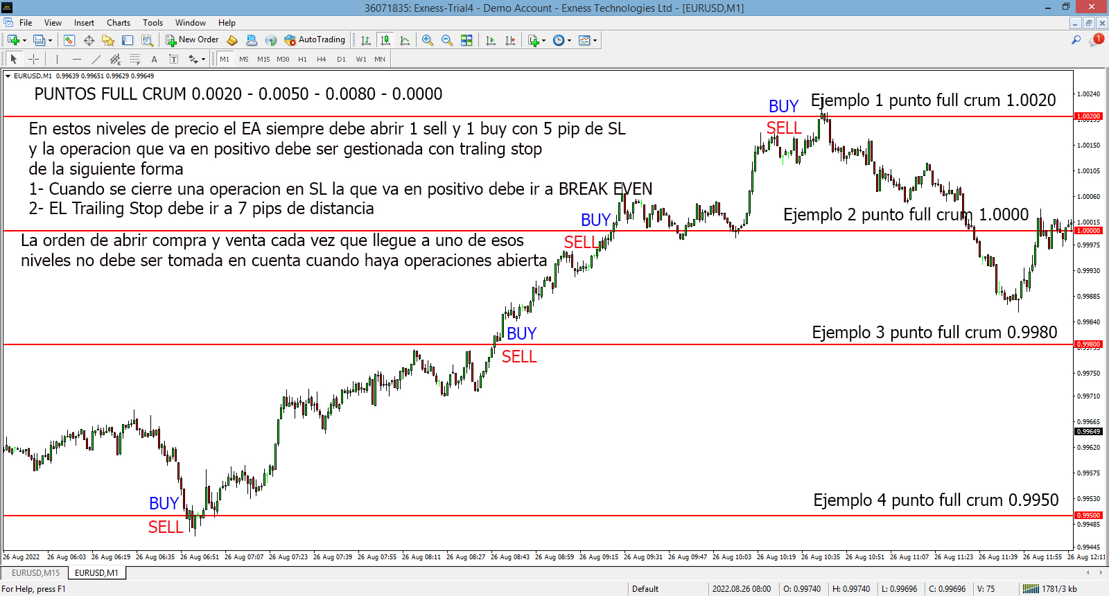 Cualquiera que sea el precio del par EURUSD siempre abrir compra y venta en los puntos full crum .