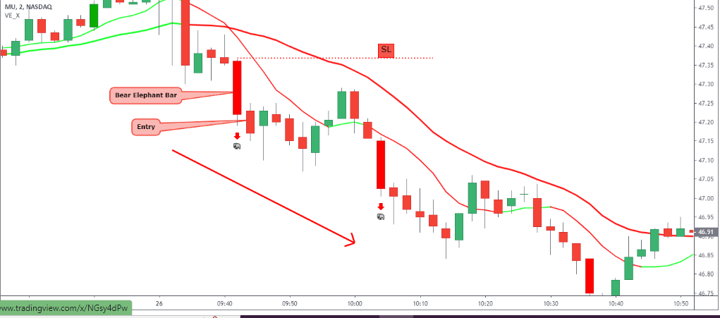 5. La apertura de posiciones: En la siguiente vela a la aparición de la vela Elephant.