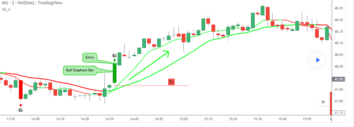 7.1 Bull Elephant: Debe ir en el valor mínimo de la vela Elephant