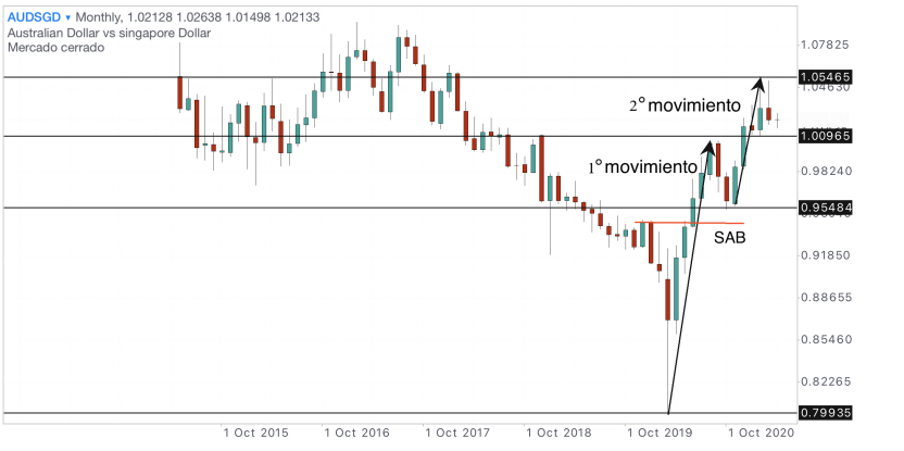 Para empezar con nuestro análisis técnico debemos comenzar por la base, que es la teoría de dow. Empezaremos “SIEMPRE” analizando los dos últimos movimientos de derecha a izquierda, desde el mensual hasta la temporalidad de H4, estos dos últimos movimientos deben ser claros y los marcaremos a favor de la tendencia y únicamente marcaremos los movimientos de rotura de SAB y cambio de tendencia cuando este se confirme con el segundo impulso después de la rotura, sino trazaremos los 2 últimos movimientos previos a la rotura de SAB hasta dicha confirmación. Trazaremos también los niveles de altos y bajos de esos 2 últimos movimientos en mensual. También marcaremos el SAB en todas las temporalidades de el mensual hasta h4, es preferible usar distinto color para cada Time frime, así identificaremos correctamente cada nivel importante. Marcación con cambio de tendencia y rotura de SAB confirmado: FOTO DE EJEMPLO 1 NOMBRE: (10)