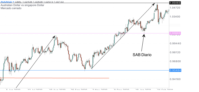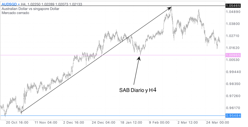 Y el SAB H4, que este caso coincide con el SAB diario, por lo que si eso ocurre se deja siempre el color del SAB del timefrime superior, como se muestra a continuación: FOTO DE EJEMPLO 1 NOMBRE: (40)