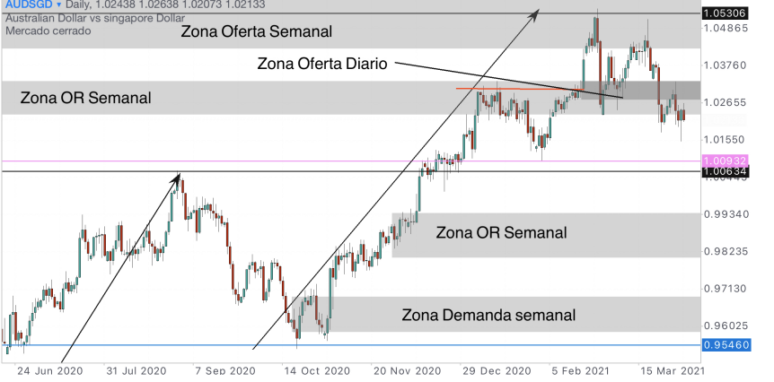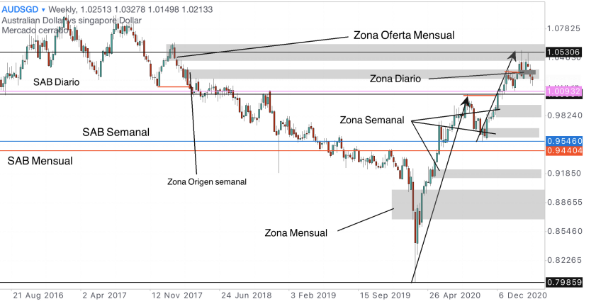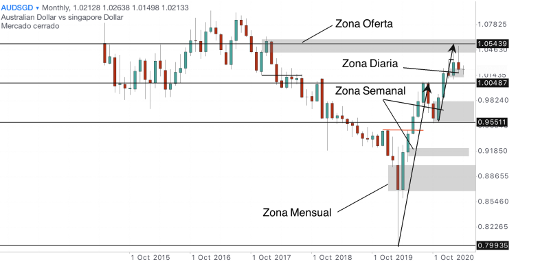 Y solo nos queda esperar a que el precio llegue a las zonas previamente marcadas y nos genere un gatillo de entrada o un esquema de extremo. Teniendo en cuenta todo lo que hemos visto hasta ahora y aplicarlo en nuestra operativa.
