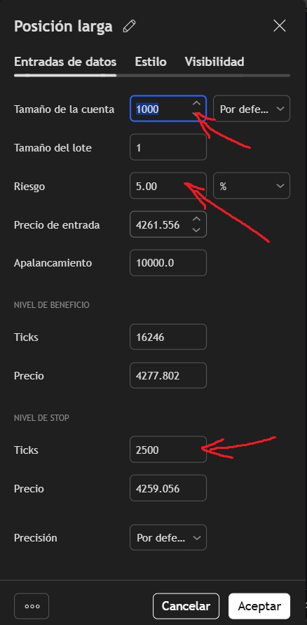Costo_por_lote = Distancia_SL_Ticks * Tick_value / Tick_size Lote_Final = Riesgo_USD / Costo_por_lote