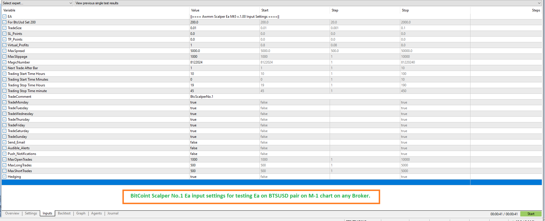 BitCoin Scalper No.1 Ea is best works on BTSUSD pair on M-1 chart.