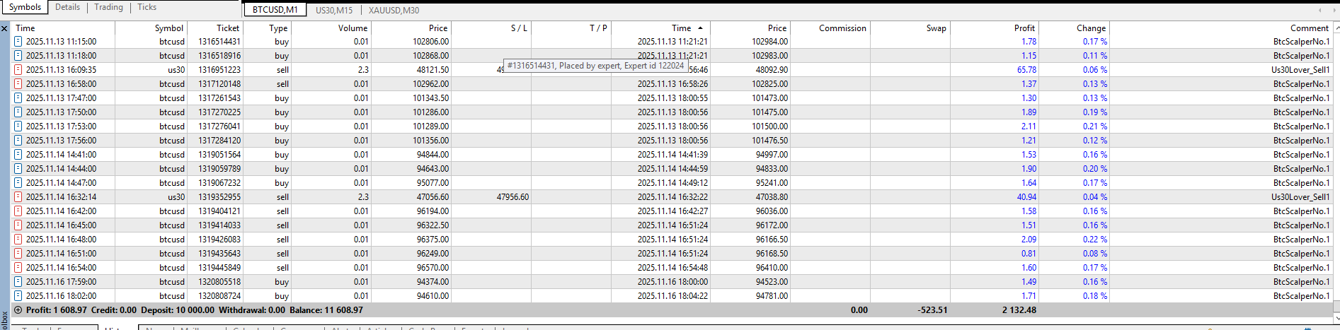 Live Trade history By BitCoin Scalper No.1 Ea on IcMarket Broker using the set file attached here.