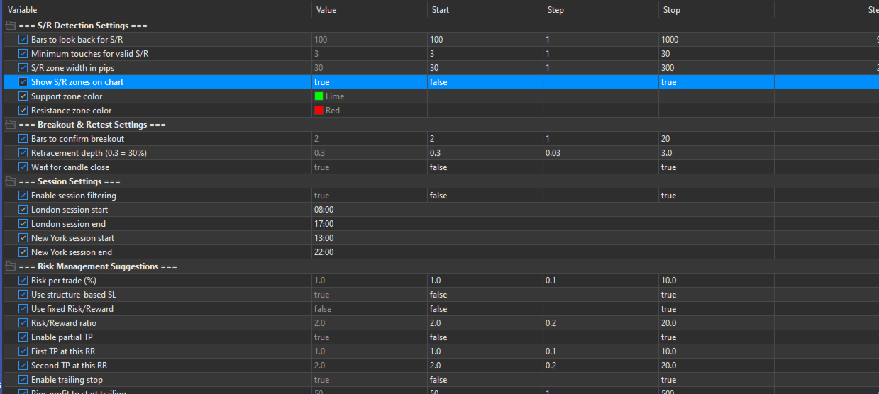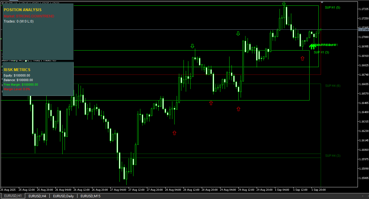 Este avanzado Asesor Experto de MT5 automatiza las decisiones de trading basándose en una sólida estrategia de ruptura y retesteo de soportes y resistencias. Realiza análisis multi-marco de tiempo a través de gráficos H4, H1 y M15 para identificar configuraciones de trading de alta probabilidad con validación de zona precisa.