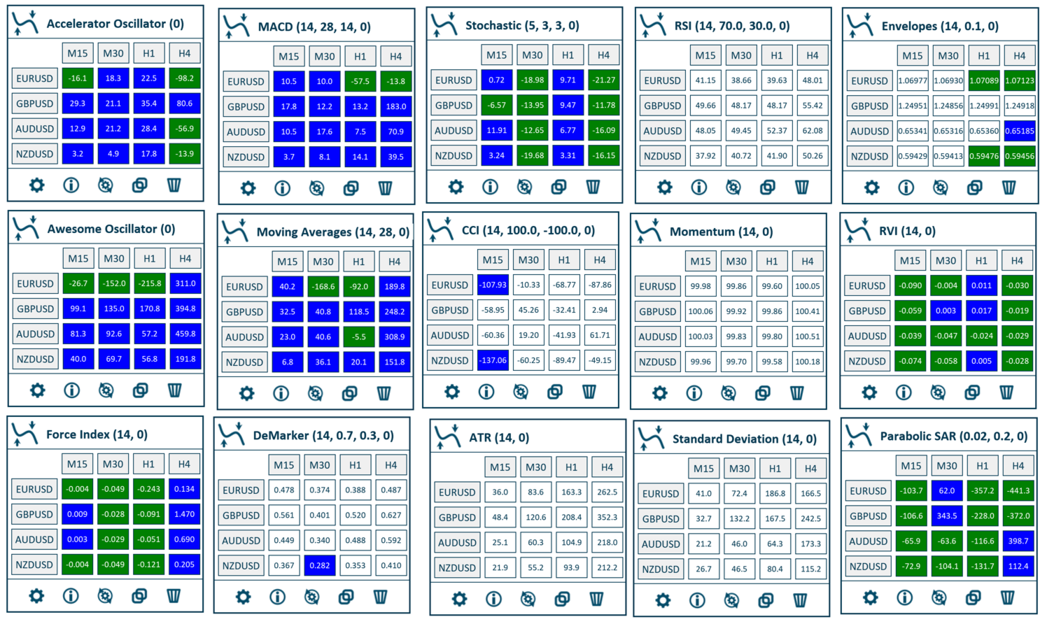 Recomiendo seleccionar 2-3 pares ForEx que están menos correlacionados o (y) Oro y empezar con la configuración por defecto. Evite exóticos y pares con gran spread.