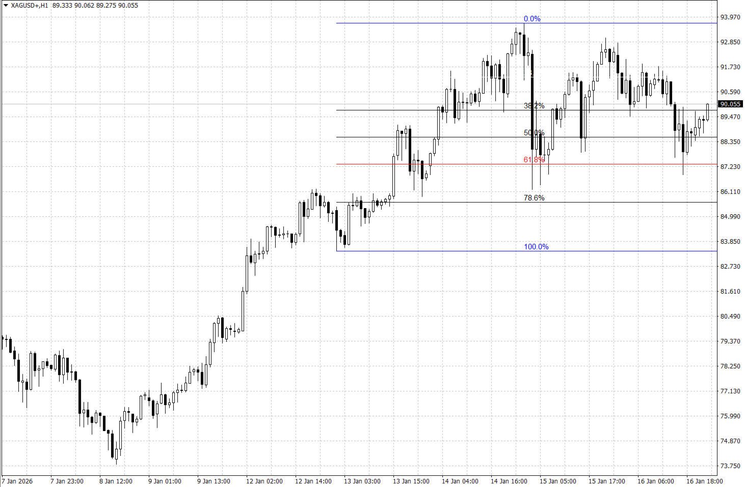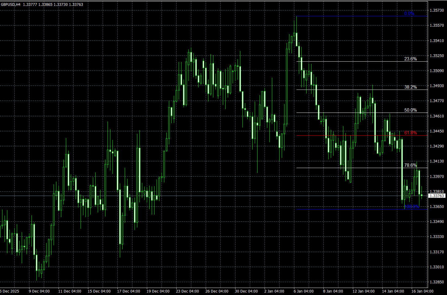 - Líneas blancas: Representan los niveles de retroceso secundarios (23,6%, 38,2%, 50,0%, 78,6%).