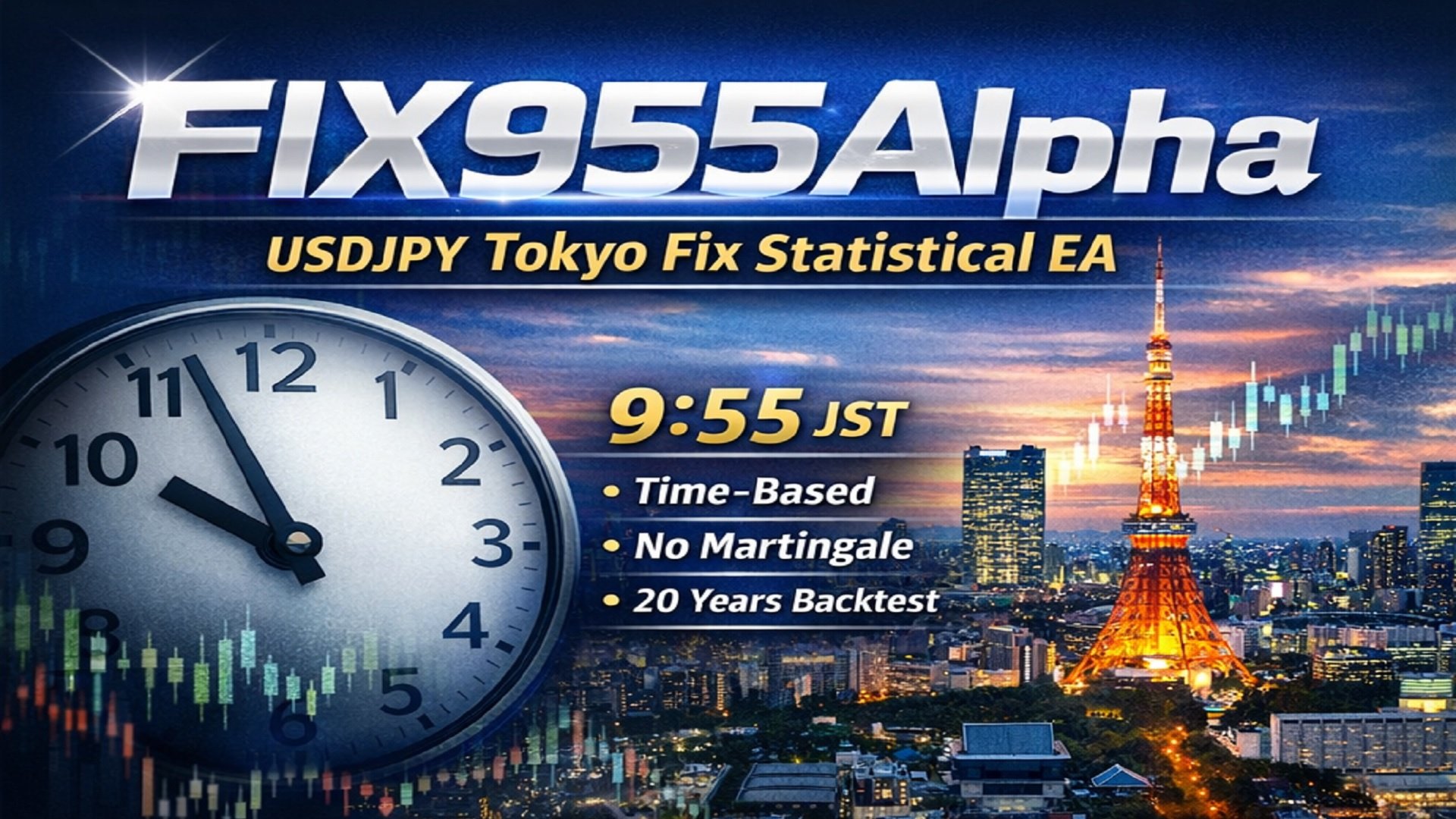 FIX955Alpha es un EA cuantitativo basado en el tiempo diseñado para explotar patrones de liquidez recurrentes alrededor del Tokyo Fix (9:55 JST) en USDJPY.