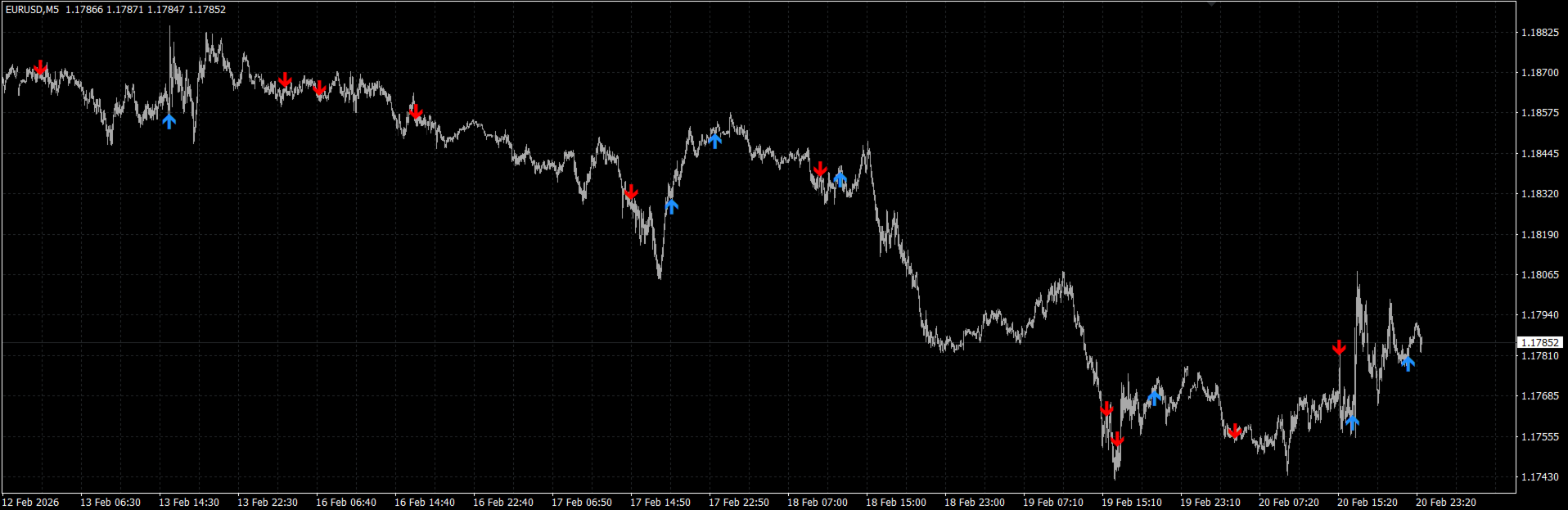 Diseño visual limpio: Flechas arriba/abajo discretas o cuadros resaltados directamente en las velas de precios - sin sub-ventanas desordenadas, sin desorden gráfico. Sólo puntos de entrada accionables.