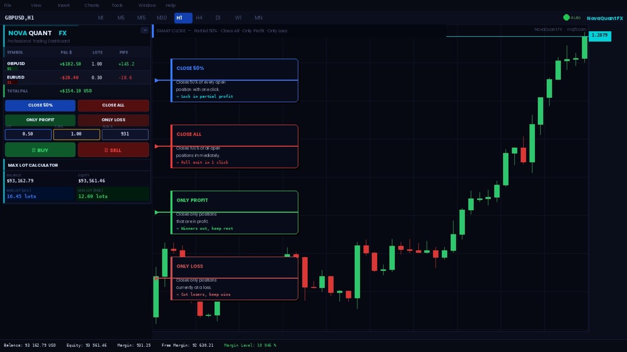 NovaQuant FX no garantiza beneficios. Proporciona un marco de negociación estructurado y automatizado diseñado para apoyar un control disciplinado del riesgo y una ejecución consistente.
