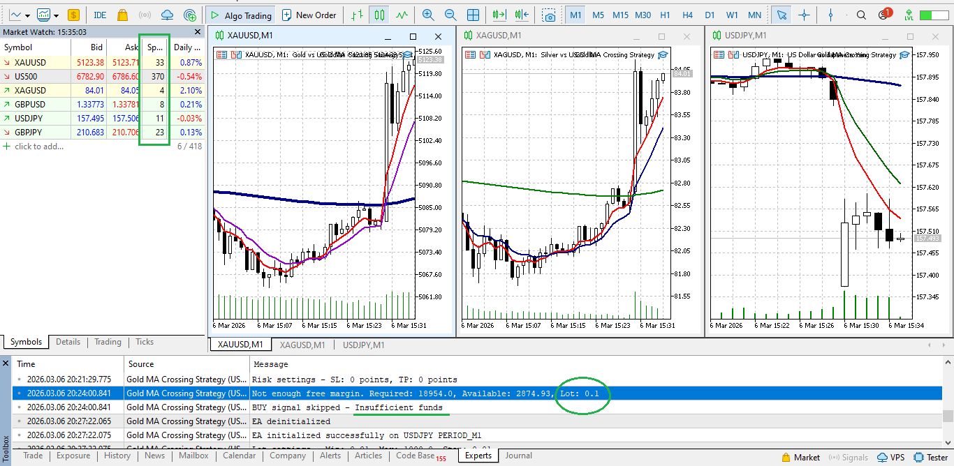 For example , if set risk with lot 0.1 , not enough for open buy / sell if Risk setting not set