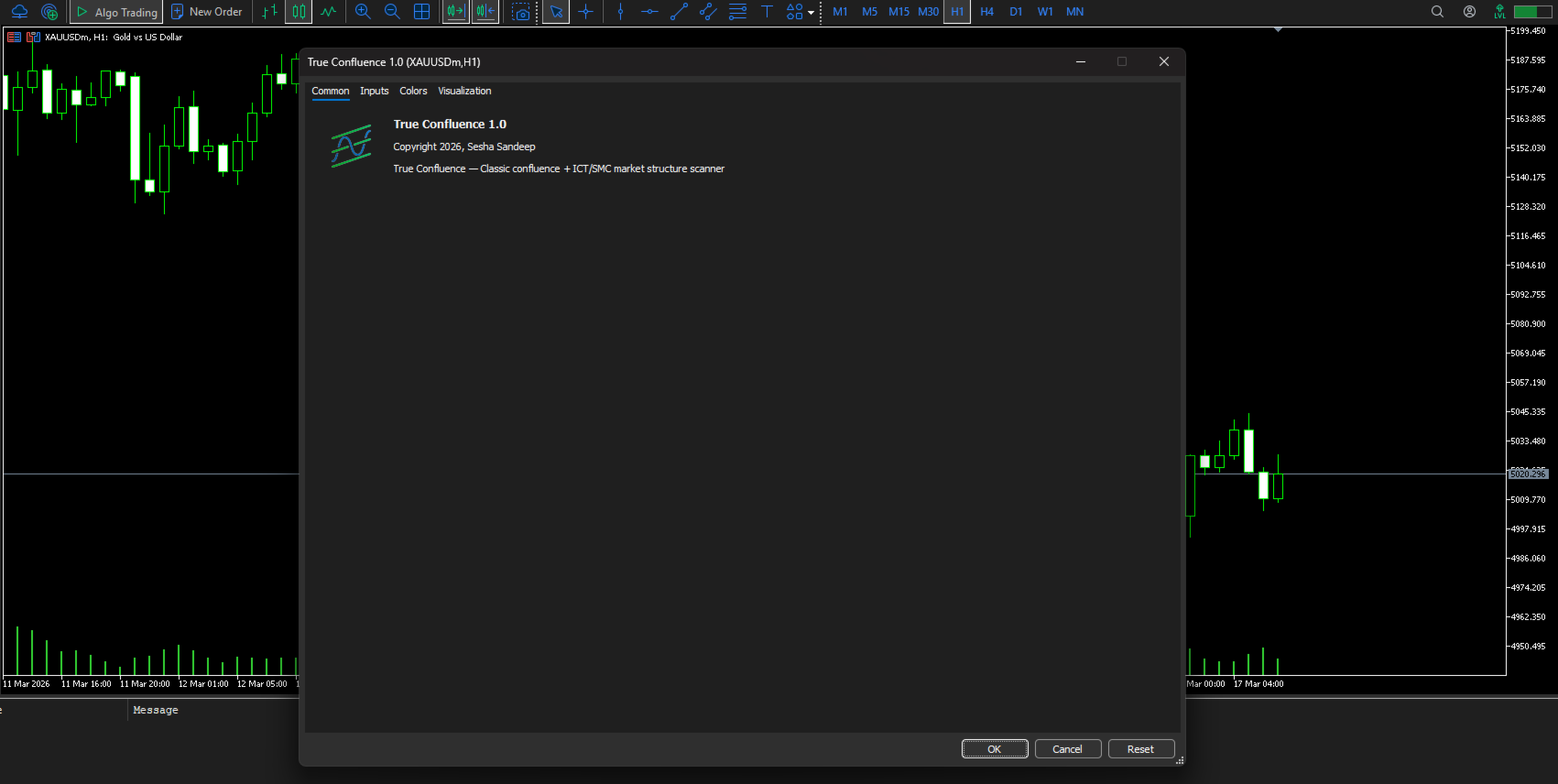 True Confluence es un indicador de MetaTrader 5 diseñado para los operadores que quieren señales más claras, confirmación RSI, análisis de confluencia, contexto de tendencia, y soporte de gráficos multi-marco de tiempo en un tablero en el gráfico.