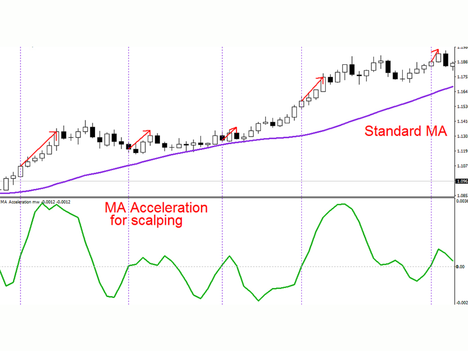 MA Acceleration es un indicador de scalping, diseñado como herramienta auxiliar para el indicador "MA Speed"