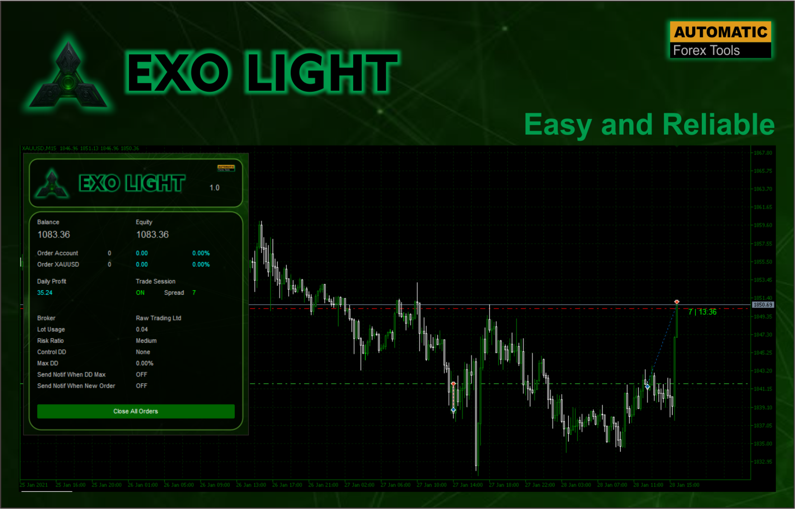 Exo Light es un Asesor Experto diseñado específicamente para el par de divisas XAUUSD.