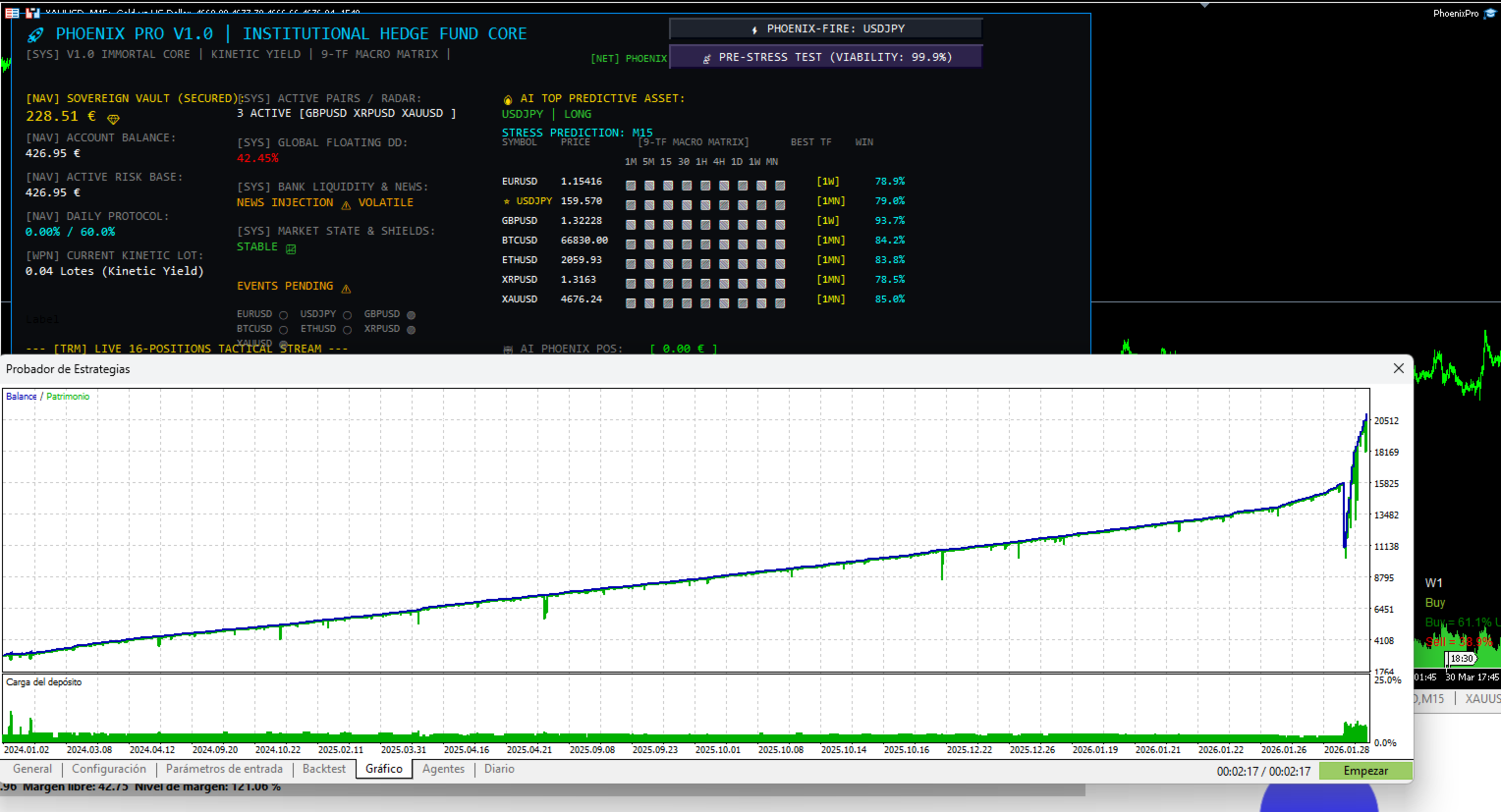 Phoenix Pro no es simplemente un Expert Advisor; es un ecosistema de trading de alta precisión diseñado para inversores que priorizan la consistencia, la protección inteligente del patrimonio y la escalabilidad en los mercados financieros modernos. Tras años de desarrollo y optimización, Phoenix Pro se presenta como la solución definitiva para quienes buscan un equilibrio real entre rentabilidad y riesgo controlado.