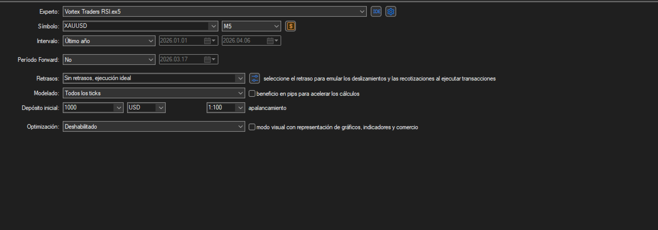 🌀 VORTEX TRADERS RSI v2.0 — Expert Advisor para XAU/USD (Oro)