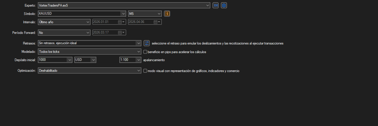 Vortex Traders Price Action combina la precisión del análisis de precio institucional con una gestión de riesgo robusta, ofreciendo una solución automatizada completa para traders serios del mercado del oro